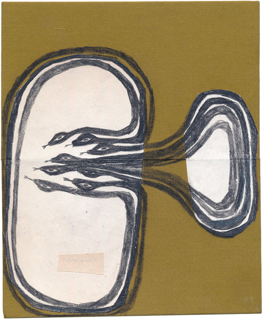 In Alexandra Duprez's drawings, paintings and collages, the human form is sensitively interpreted using a balance of abstraction and symbolic gesture. Shaped from her early encounters with Aboriginal art, Duprez silhouettes the human form and intermingles mystical elements of various orders: limbs, snakes, and waves of energy. These concurrences of iconography point us toward a spiritual energy entangled with the unconscious.