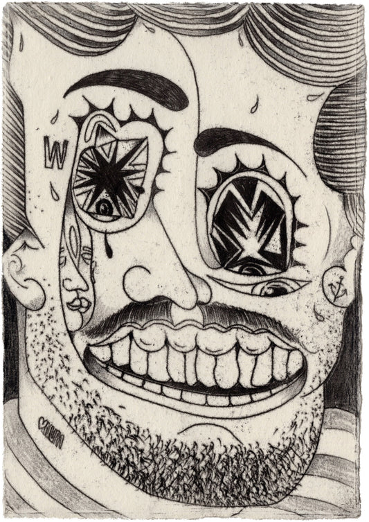 David Joel Kitcher grew up in a small desert town in Eastern Washington located in close proximity to the Hanford Nuclear Site. His work explores themes of trauma, genetic mutation, neurodivergence and mental illness combined with personal metaphor and symbolism. Kitcher studied drawing and printmaking at Evergreen State College in Olympia, WA and has a degree in graphic design from Seattle Central Creative Academy.